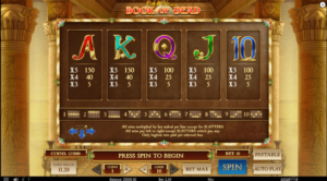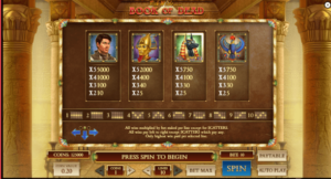 Los símbolos de Book of Dead te sumergen de lleno en la mitología egipcia. Se dividen en dos grupos: los de alto valor y los de bajo valor. Los más valiosos son el explorador Rich Wilde, el Faraón, Anubis y Horus. Conseguir una combinación de 2 a 5 de estos símbolos en una línea de pago activa te dará las mayores recompensas.